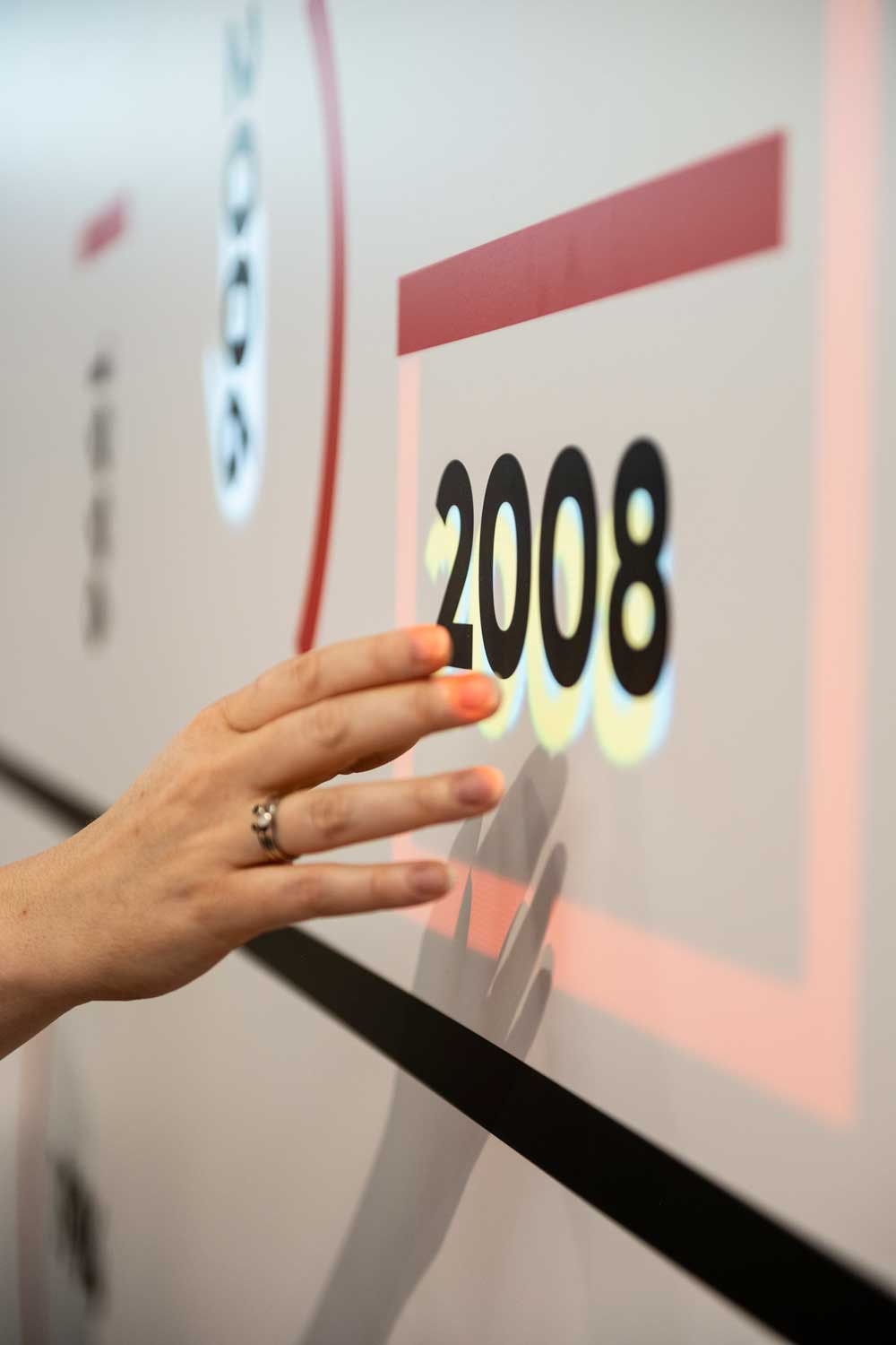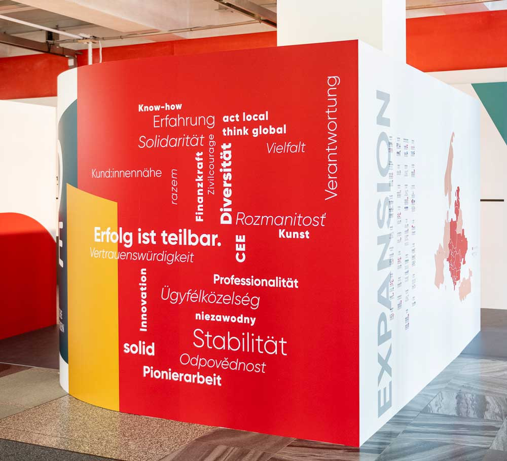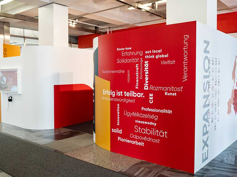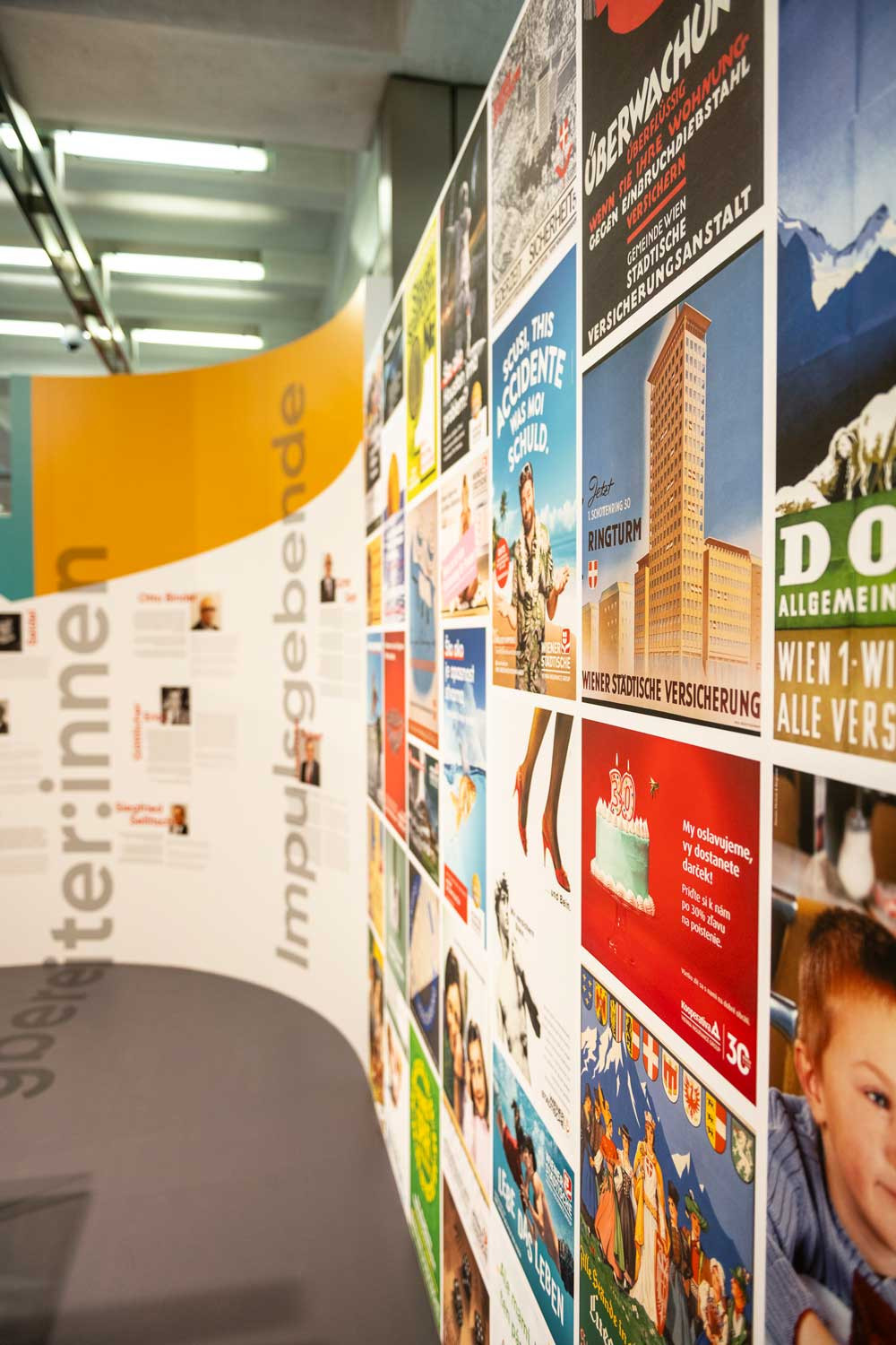 Zum 200-jährigen Jubiläum des Wiener Städtischen Versicherungsvereins entwickelten wir, auf einer Fläche von 50 m², eine temporäre Architektur für die Jubiläumsausstellung im Foyer des Ringturms. Das von uns entwickelte Design griff sowohl die Geschichte als auch die Zukunftsperspektiven des Unternehmens auf.