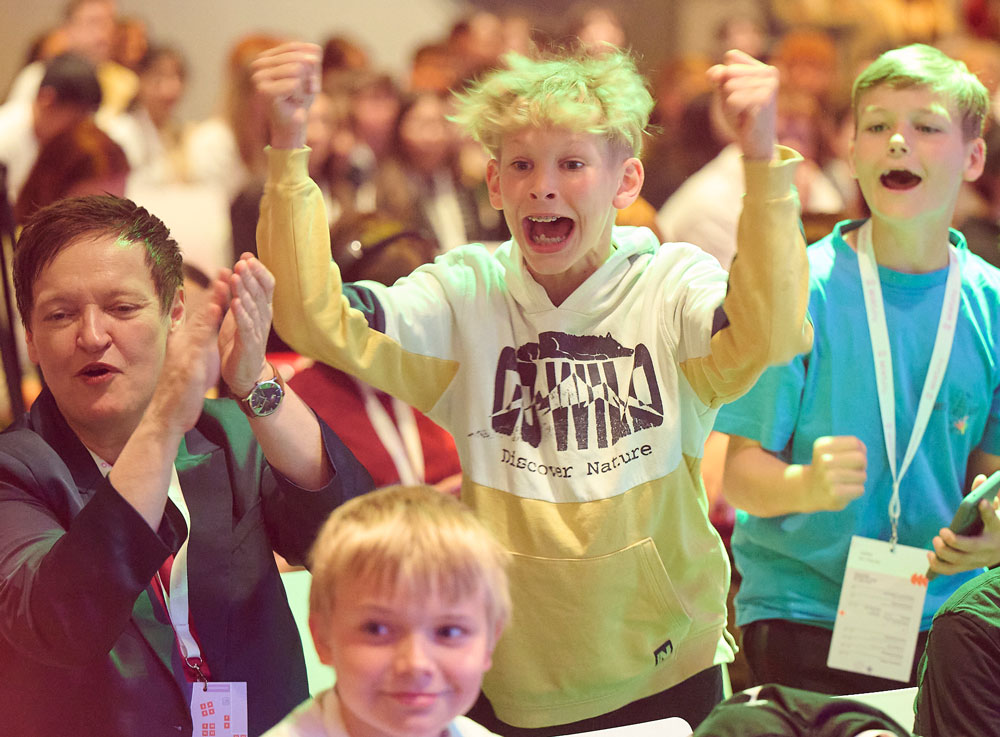 Die Projekte, von „Selbstfahrender Bewässerungsroboter“ über „Basketballautomat“ bis hin zur „Transportchallenge“, spiegelten die ganze Bandbreite technischer Kreativität wider. Begleitet wurde die Veranstaltung von Moderatorin Melanie Flicker, bekannt aus „Hallo Okidoki“, die mit viel Charme und ansteckender Energie durch das Programm führte. Ein besonderes Highlight: das abschließende Kahoot-Quiz, das nicht nur die Emotionen hoch gehen ließ, sondern auch den drei Bestplatzierten Preise für die Klasse bescherte.