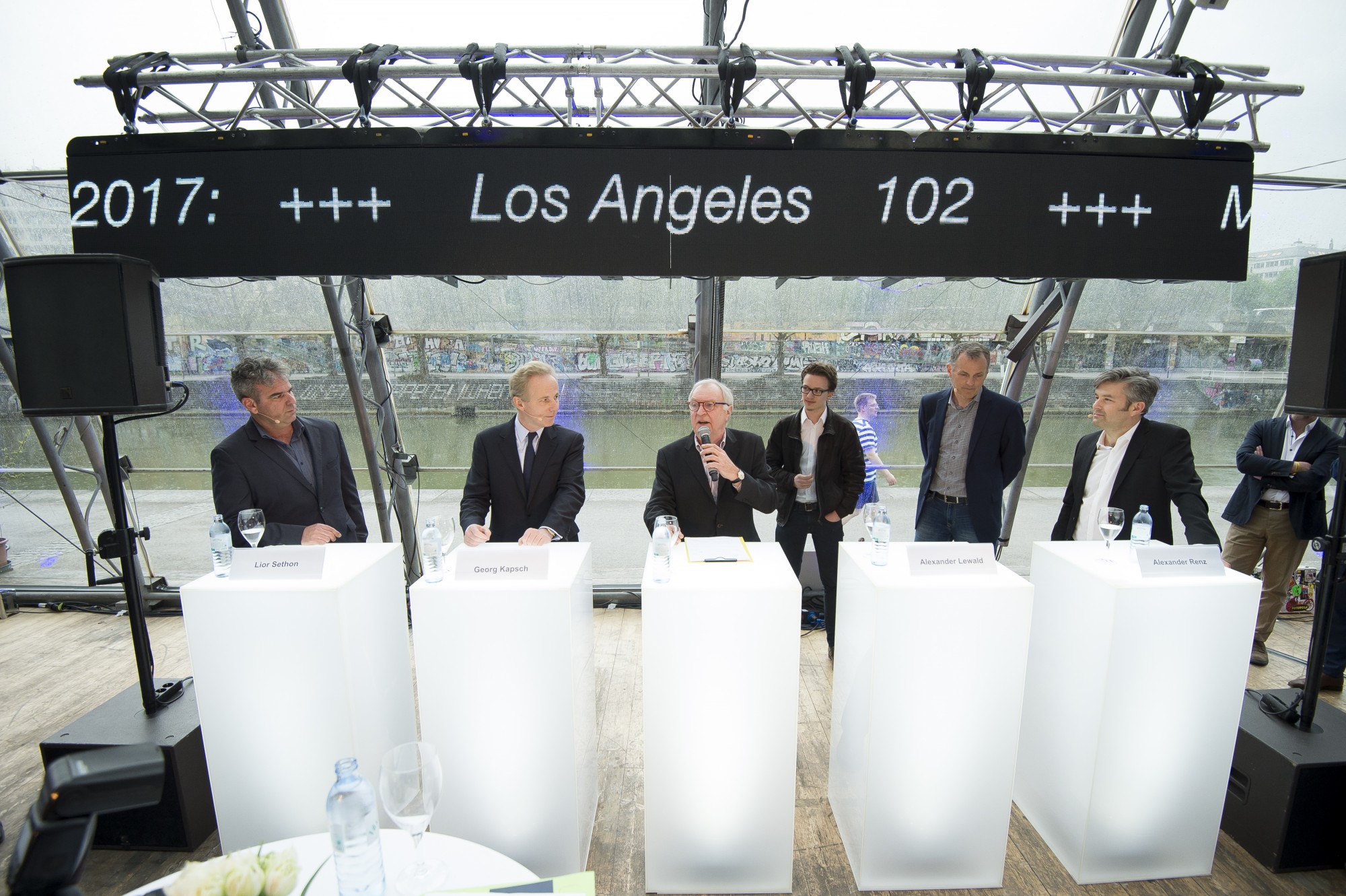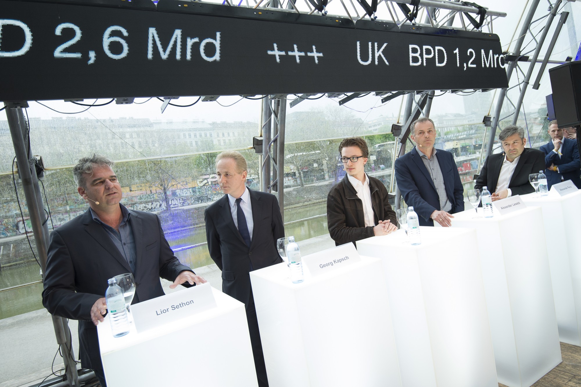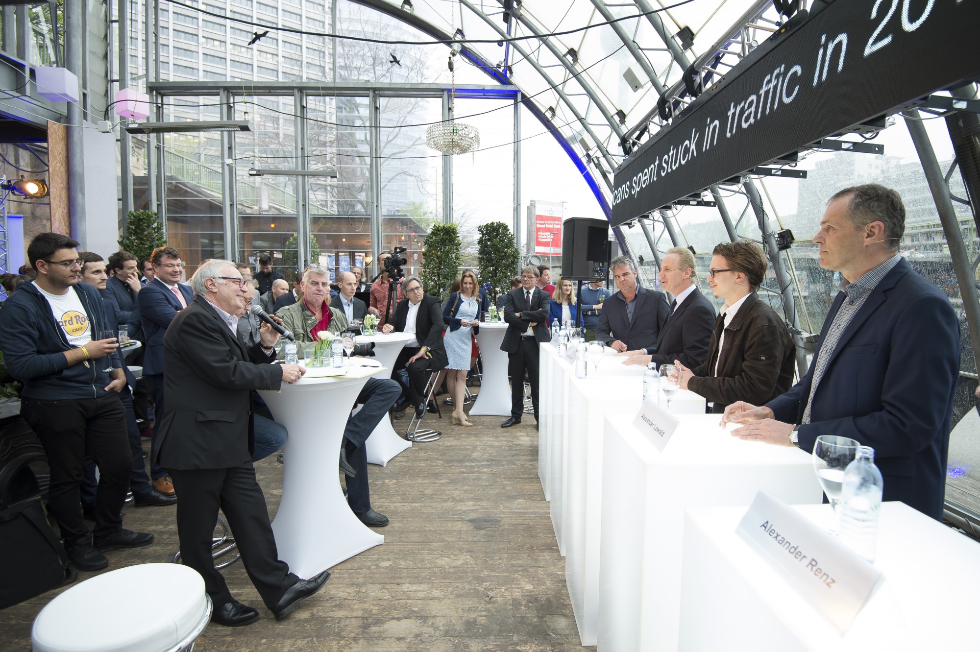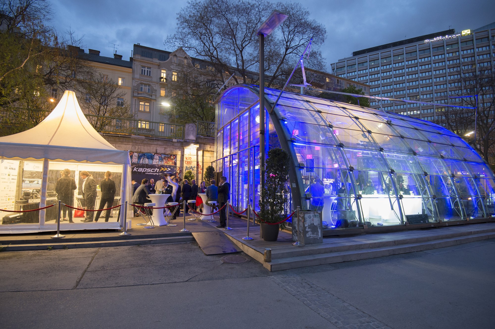In the run-up to Darwin’s Circle – Mobility, Kapsch hosted an expert’s panel in the glass house of Adria Wien. The most important facts of the talk were also shown as tickers on a LED display. FM4’s Stuart Freeman was the host of the talk. The Hyperloop Pod by Team Warr was showcased in the outdoor area and gave impulses to imagine what the future of mobility could look like.